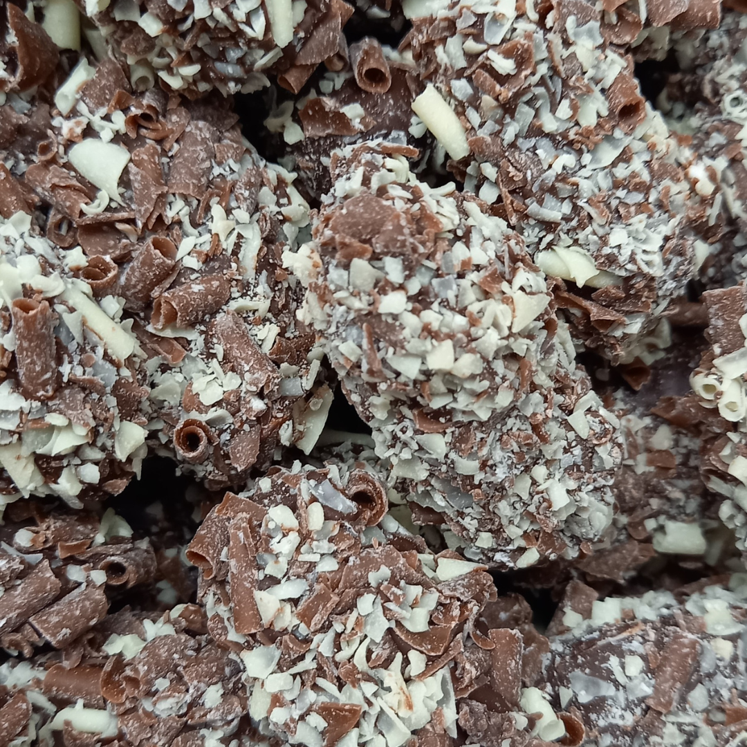 een heerlijke romige vulling met de kruidige smaak van Jägermeister. Gehuld in pure chocolade met cacao. Ook heerlijke ter afsluiting van een wilddiner....